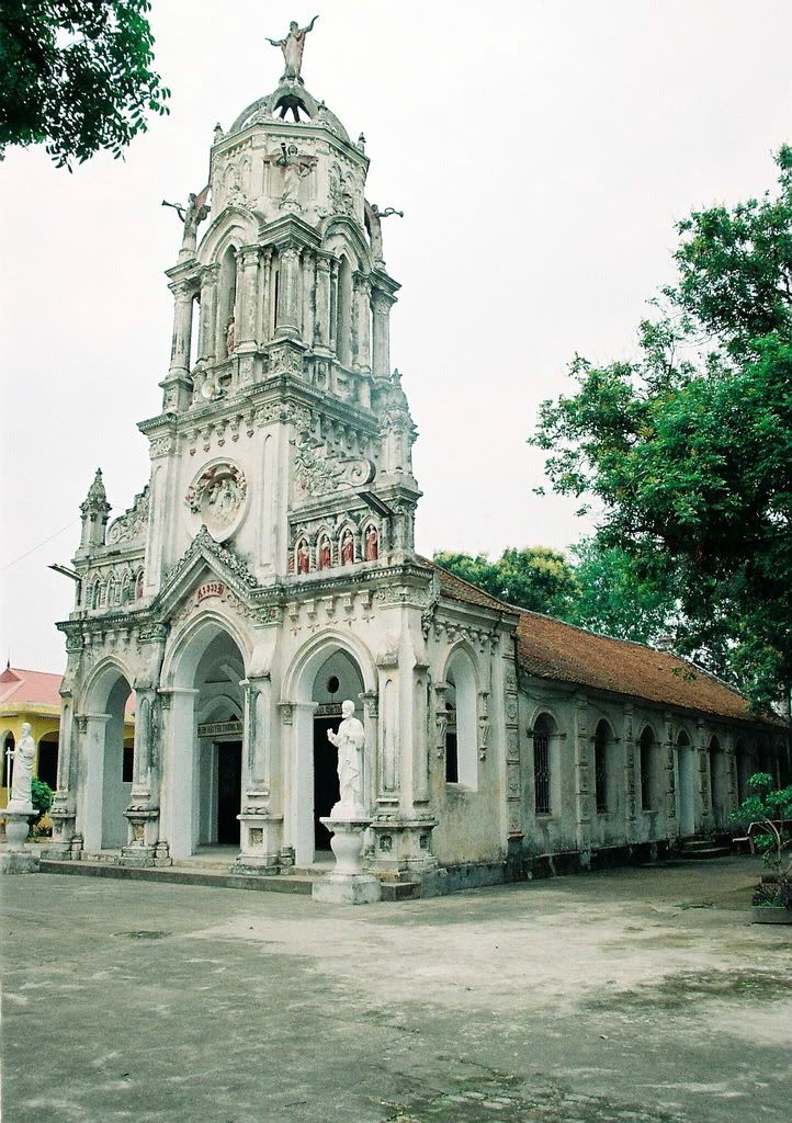 Cái nhà thờ này ở gần bến đò Dương đoạn Thanh Trì đi Hưng Yên, em quên tên rồi ah!