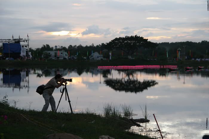 Hôm qua đang "bắn" bên bờ hồ, mưa đột ngột chui dưới sân khấu để núp. Mưa ướt nhẹp, không biết lão 5D có bị gì không nữa!