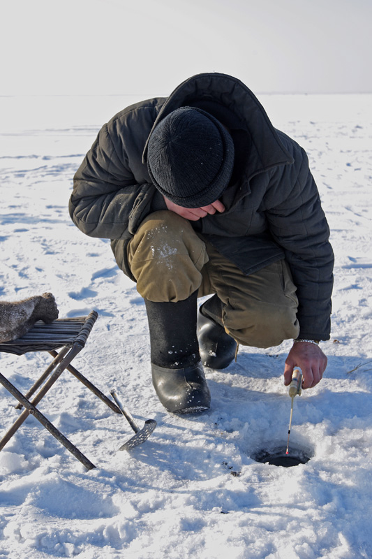 Người ta lấy một cái khoan và khoan lỗ xuống , trung bình 70cm-1,2m để thấy được độ dày của băng(mặt nứơc) thì em đã đậu xe và để các bác tưởng tượng ạ , cái xe em khoảng 2tấn-2,5 tấn gì đó(dự đoán)