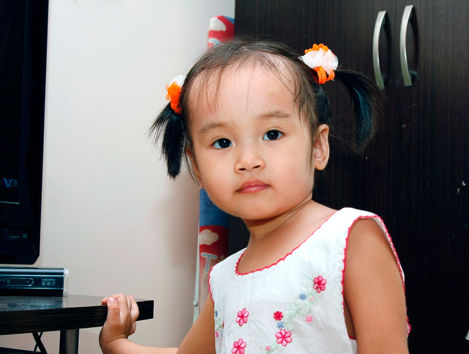 Vì điều kiện chưa mua lens fix để chụp trong nhà, em lấy đỡ cái 24-105 F4L của em ra để chụp con bé nhà em với flash (đánh lên trần nhà và tường màu cam nhạt), kết quả là ảnh bị ám vàng quá...