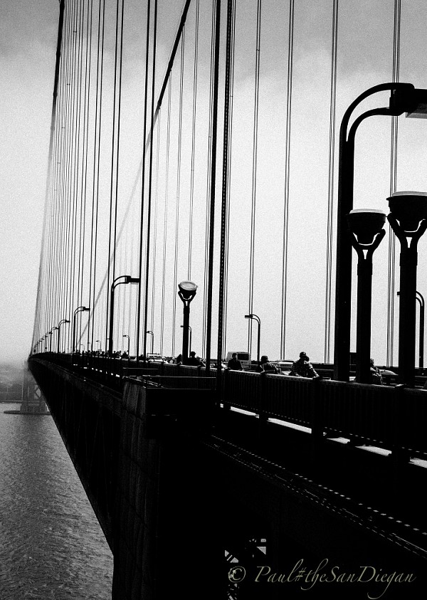 | Một đoạn của cầu Cổng Vàng trên nền đen-trắng. |