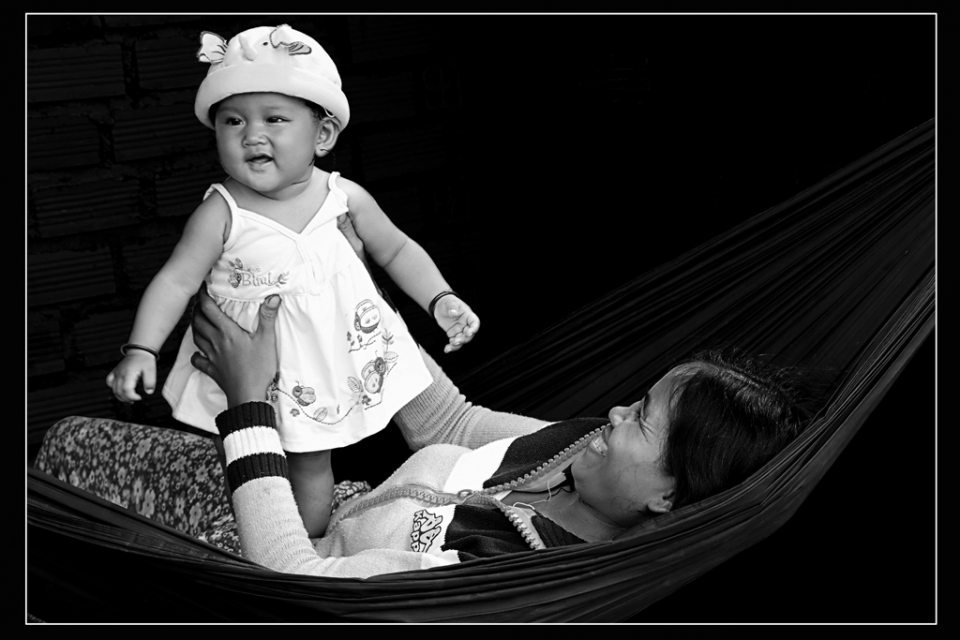 Bức ảnh này được ghi lại một cách tự nhiên cảnh hai mẹ con đang cười vui hạnh phúc tại làng gốm Bàu Trúc năm 2010.