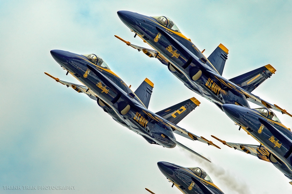 Các phi công Hải quân Blue Angels bay đội hình 4 chiếc thật sát cánh nhau.