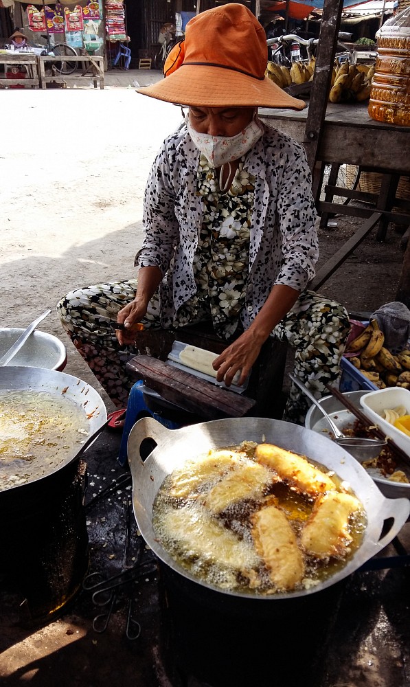 | Quán chuối chiên ven đường |