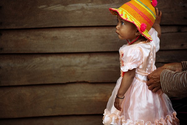 | Tôi chụp bức ảnh này vào sáng ngày chủ nhật khi nhóm CBS lên tới làng dân tộc J'rai Pleikly, cô con gái được mẹ chỉnh sửa y phục để vào nghe giảng đạo. |