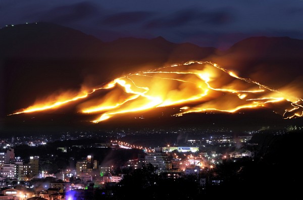 Ảnh chụp một lễ hội địa phương tại Nhật Bản. Người ta sẽ từ từ thiêu rụi cả ngọn núi.