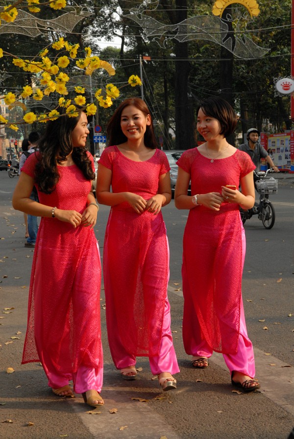 | Trên phố mùa xuân thật là tươi tắn được trang điểm bởi những tà áo dài thướt tha. |