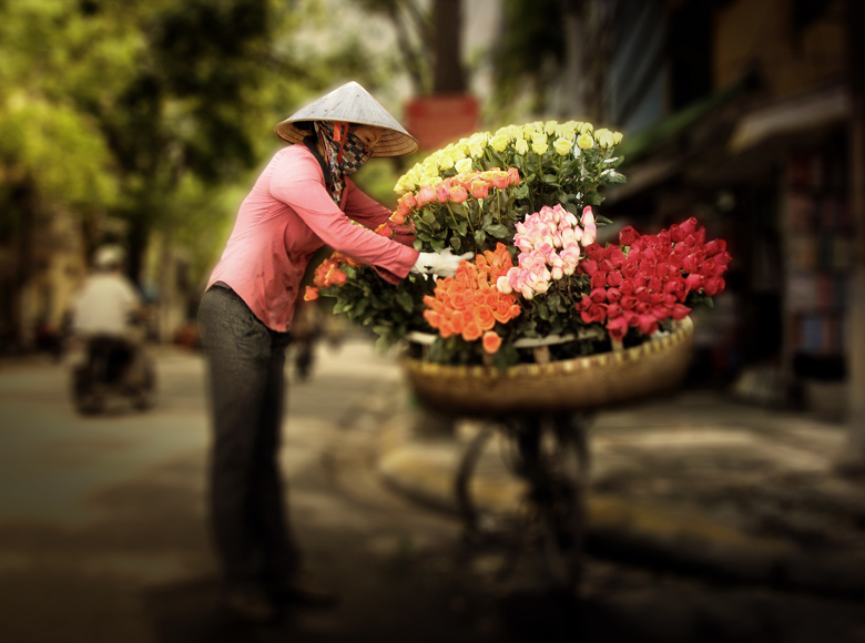| Tôi đã xa Hà Nội rất nhiều năm, nay có dịp trở lại thăm phố cũ, phố xã cũng đã thay đổi nhiều nhưng những hình ảnh rất thân thuộc vẫn còn nguyên vẹn khi tôi trở lại. Những quán nước, những gánh hàng rong...,đặc biệt những cô gái chở hoa đi bán khắp phố phường, gợi lại những ký ức về một Hà Nội xưa, với làng hoa Ngọc Hà nổi tiếng kinh kỳ, giẩn dị mà thân quen đến lạ, một chút hoài niệm xưa giờ vẫn còn hiện hữu ngay giữa lòng thủ đô, tấp nập tiếng còi xe.... |